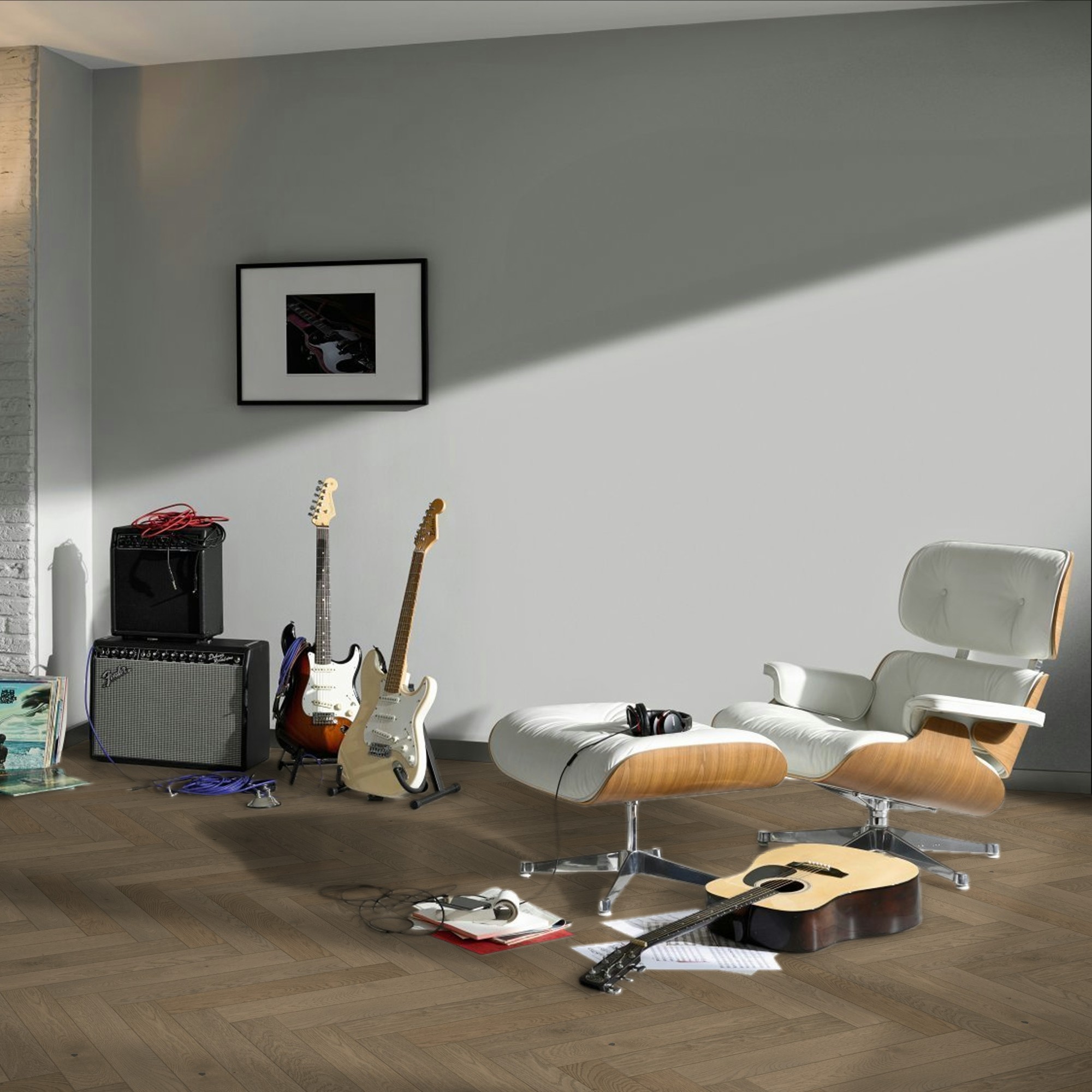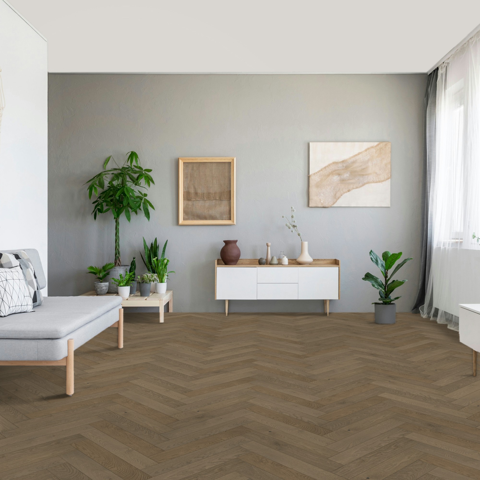 Engineered Wood Flooring Trendtime 3 Living Plus Herringbone, Dub Chalet sivý extra matný lak M4V , 1748885 570x95x13 mm