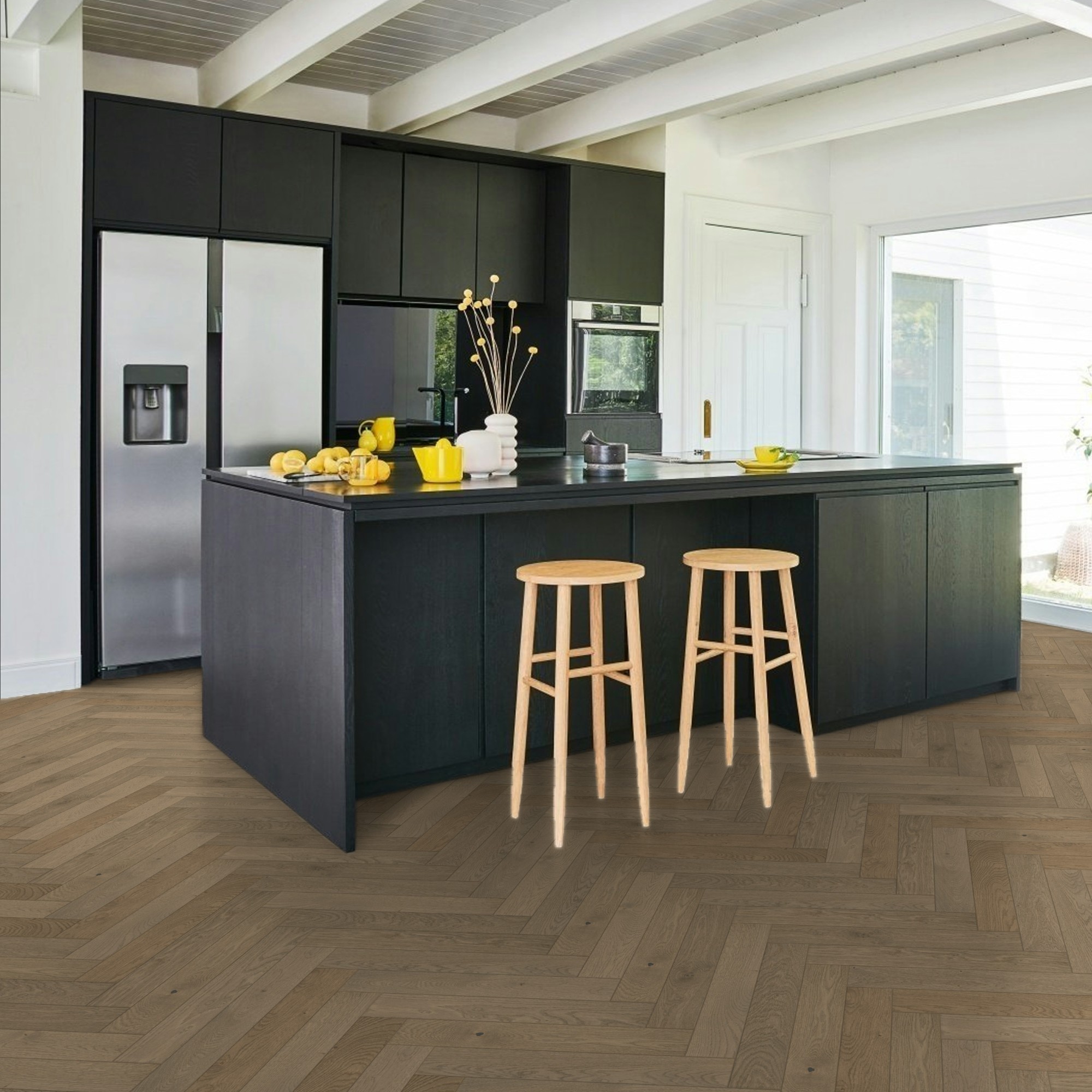 Engineered Wood Flooring Trendtime 3 Living Plus Herringbone, Dub Chalet sivý extra matný lak M4V , 1748885