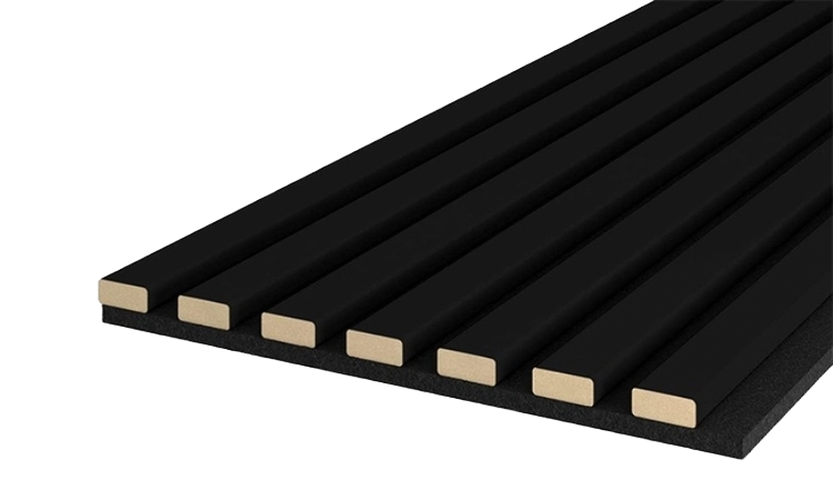 MEO Acoustic Čierna Matná sú moderné obkladové panely s PET jadrom a čiernymi matnými lamelami v štýle prírodných materiálov. Zabezpečujú výbornú akustiku, jednoducho sa montujú lepidlom a bežným náradím. Sú ideálnou voľbou pre steny v obývačkách, kanceláriách, štúdiách aj hoteloch.